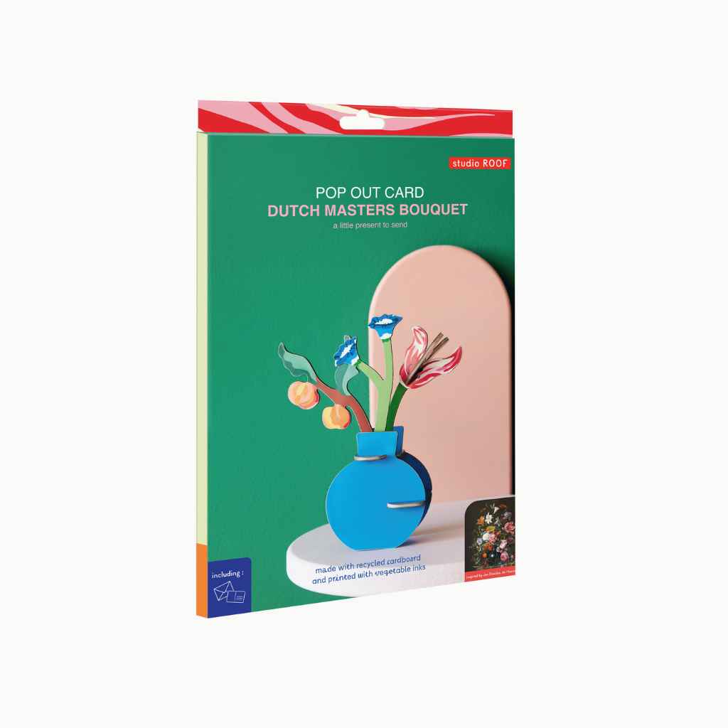 Ein Blumengruß zum verschicken. Karte mit Briefumschlag und stabilen Papier-Bastelbögen um ein Vase mit Blumen zu bauen. Einfach zusammenstecken fertig. Anleitung in der Innenseite der Verpackung.