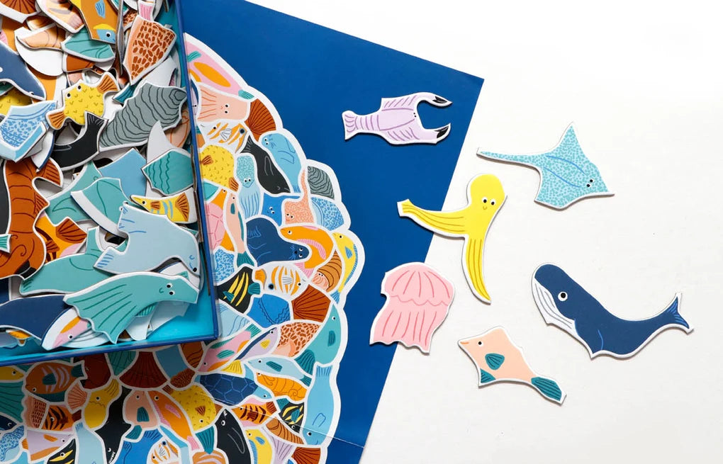Wer hat das Zeug dazu, alle 299 Meerestiere zu einem perfekten Puzzle zusammenzusetzen? In diesem raffinierten Knäuel-Puzzle gibt es keine gewöhnlichen Puzzle-Teile: Jedes ist einzigartig und sieht aus wie ein Meersbewohner! Und es gibt 299 von ihnen! Plus einen Taucher. Wer findet ihn als Erste*r? Damit niemand verzweifelt, gibt es sowohl ein Poster als Vorlage als auch einen praktischen Rahmen, um alle Meerestiere in Schach zu halten.
